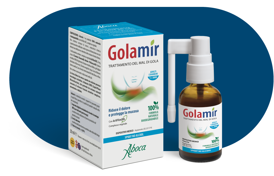 Golamir is indicated for sore throats to treat irritation and inflammation of the oropharyngeal cavity, which may be caused by viruses, bacteria, allergens or contact with irritating external agents (smoke, smog, dust).