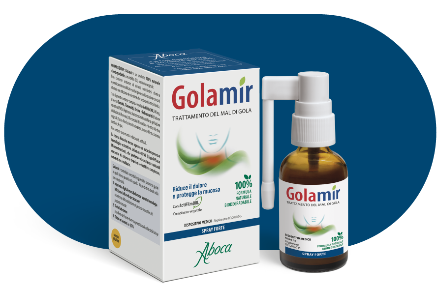 Golamir is indicated for sore throats to treat irritation and inflammation of the oropharyngeal cavity, which may be caused by viruses, bacteria, allergens or contact with irritating external agents (smoke, smog, dust). The product can also be used for colds when post-nasal drip may cause throat irritation.